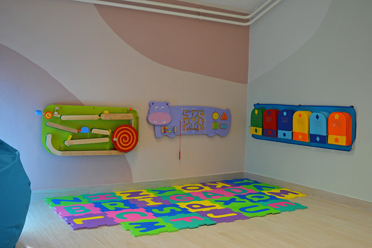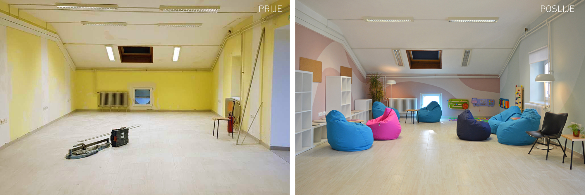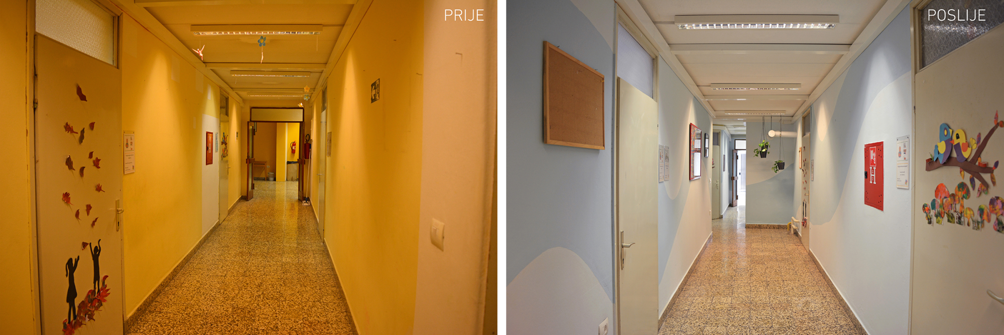 U želji da stvorimo prostor koji potiče na učenje i igru u ugodnom okruženju, bez jakih senzornih podražaja, koristili smo blage tonove pastelnih boja, fluidne forme i mnoštvo zelenila. U jeku pandemije, uz poštivanje svih mjera i preporuka, uspjeli smo uz pomoć naših partnera uljepšati prostor pulske škole te tako razveseliti učenike s teškoćama u razvoju i njihove vrijedne učitelje i asistente.