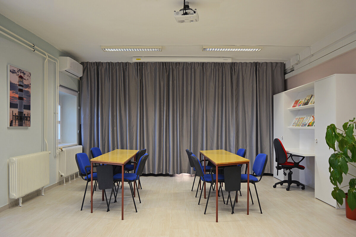 Tijekom dva dana (11. i 12. prosinca) intenzivnog rada, knjižnicu smo preurediliu fleksibilan prostor koji se lako transformira s obzirom na različite namjene, u čitaonicu, u igraonicu, prostor za goste i prostor za predavanja. Knjižnica tako sada ima zonu za učenje, površinu za igru i čitanje, prostor rezerivan za stručnu literaturu i predavanja, te dio odijeljen zavjesom koji može funkcionirati kao spremišni dio (za stolove i stolice) ili se rastvoriti kada je potreban veći prostor za radionice i predavanja.