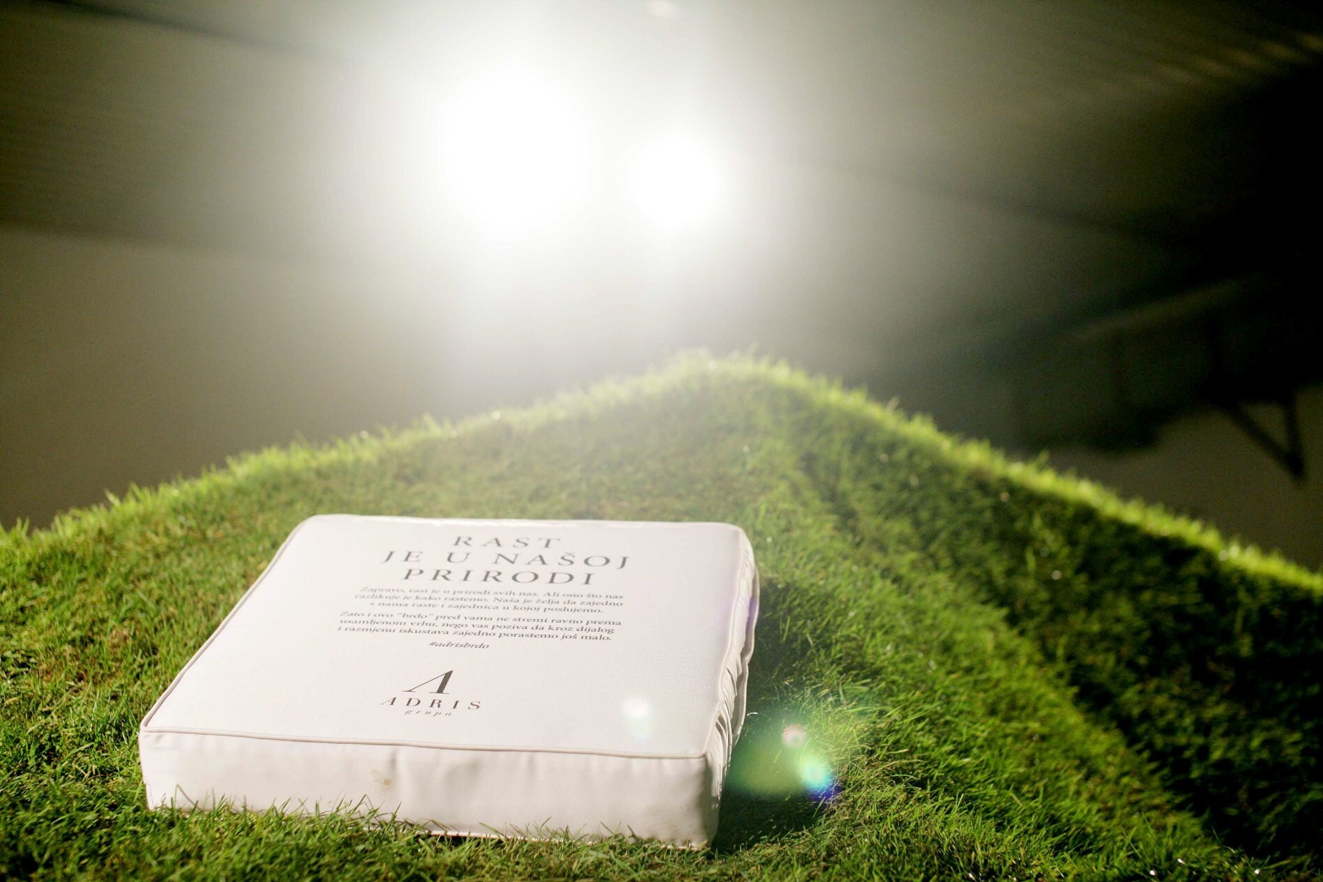 A natural ambient has been created, opposed to an unusual form around which festival visitors stopped, used it to relax, talk, work on their computers or just go through Adris corporate publications. Installation seemed so convincingly natural, even a local seagull decided to take a look and have a rest in the grass.