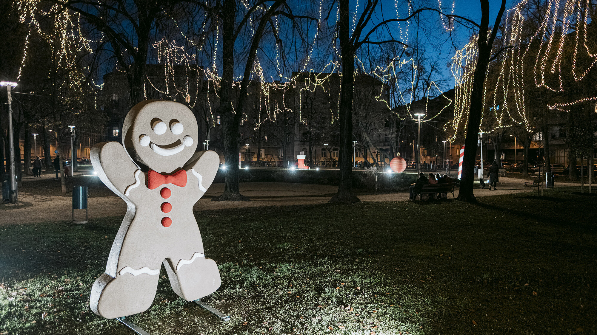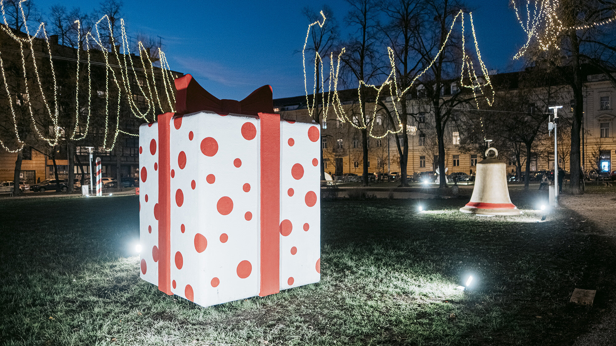 The first of the two selected locations is Svačić Square, chosen to create a warm Advent atmosphere in a completely new setting. The desired atmosphere was achieved by placing eight oversized sculptures of Christmas motifs, leading to the location being named "Big Big Christmas." Two sculptures of gifts, shooting stars, Christmas tree ornaments, candy canes, boots, bells, and a Christmas cookie were designed, constructed, and installed. The biggest challenge was to construct and transport huge sculptures made of styrofoam blocks, including a shooting star that is four meters tall, and a larger gift sculpture weighing over 300 kilograms. The lengthy process of creation took two months, requiring the use of cranes to place the sculptures in the desired locations. This fairytale-like location is primarily intended for the youngest population, but there is no doubt that even the older ones will be thrilled.