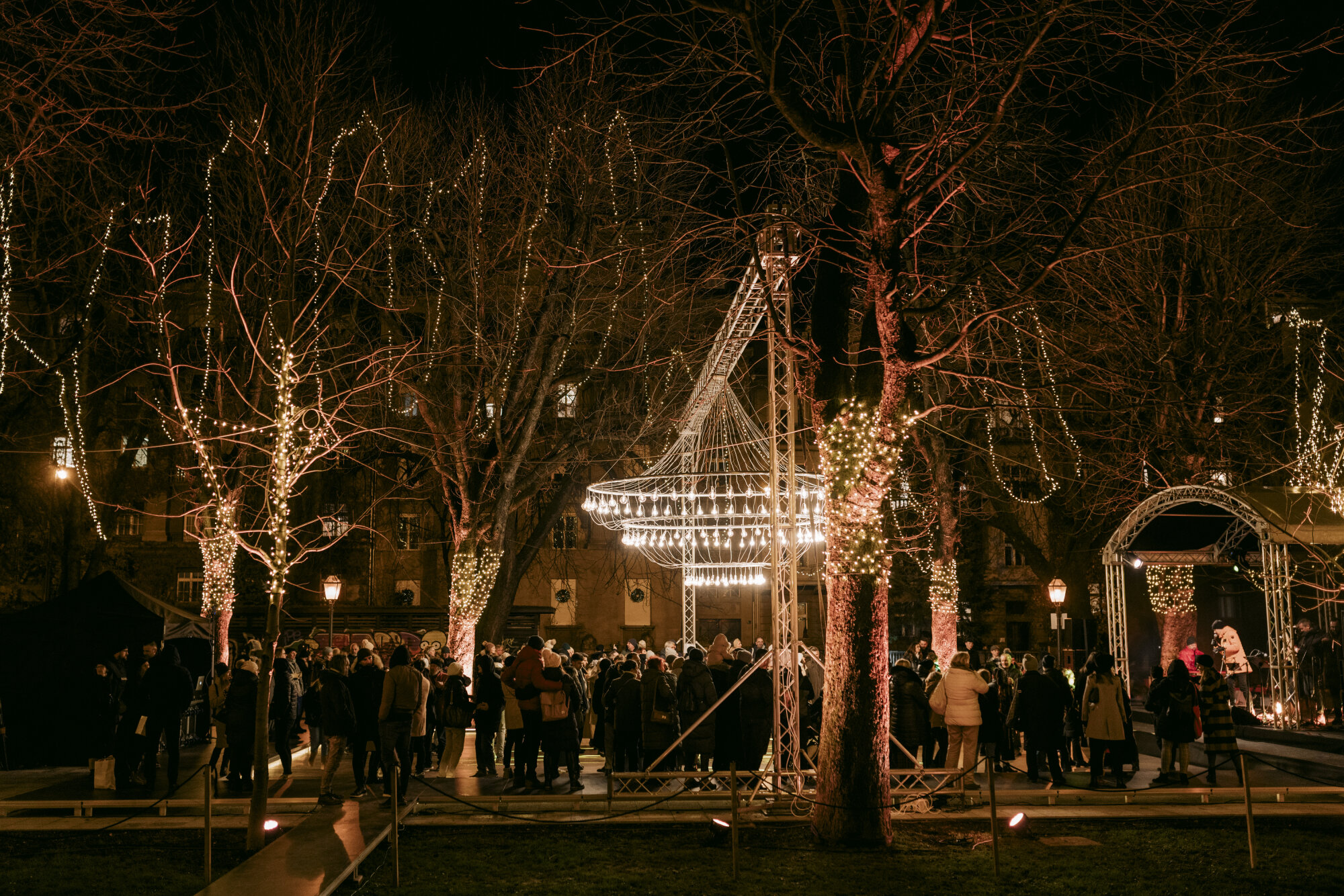 Idea for the second Advent location was inspired by history. In the early 19th century, the highly popular restaurant "Kolo" operated on this location, organizing music and dance 'day and night, summer and winter.' Through the joint efforts of BŽG, Brigada and TZGZ, the idea was realized, reviving a cult location in the history of Zagreb. Attention was given to the smallest details (such as the color of the light bulb) to create a warm Advent atmosphere. The music program is mainly based on classical and jazz, and there will be no gastronomic offerings at the Ball because the primary goal was to create new Advent locations that are significantly different from all others. The biggest challenge was to construct and transport the central motif of the ball – a huge chandelier with a diameter of almost five meters, weighing a staggering 200 kilograms and consisting of around 200 light bulbs. However, there are also many small logistical challenges when it comes to an event based on a daily program. The modern version of this iconic historical place is primarily intended for an older audience, but it is expected to generate interest across diverse generations."