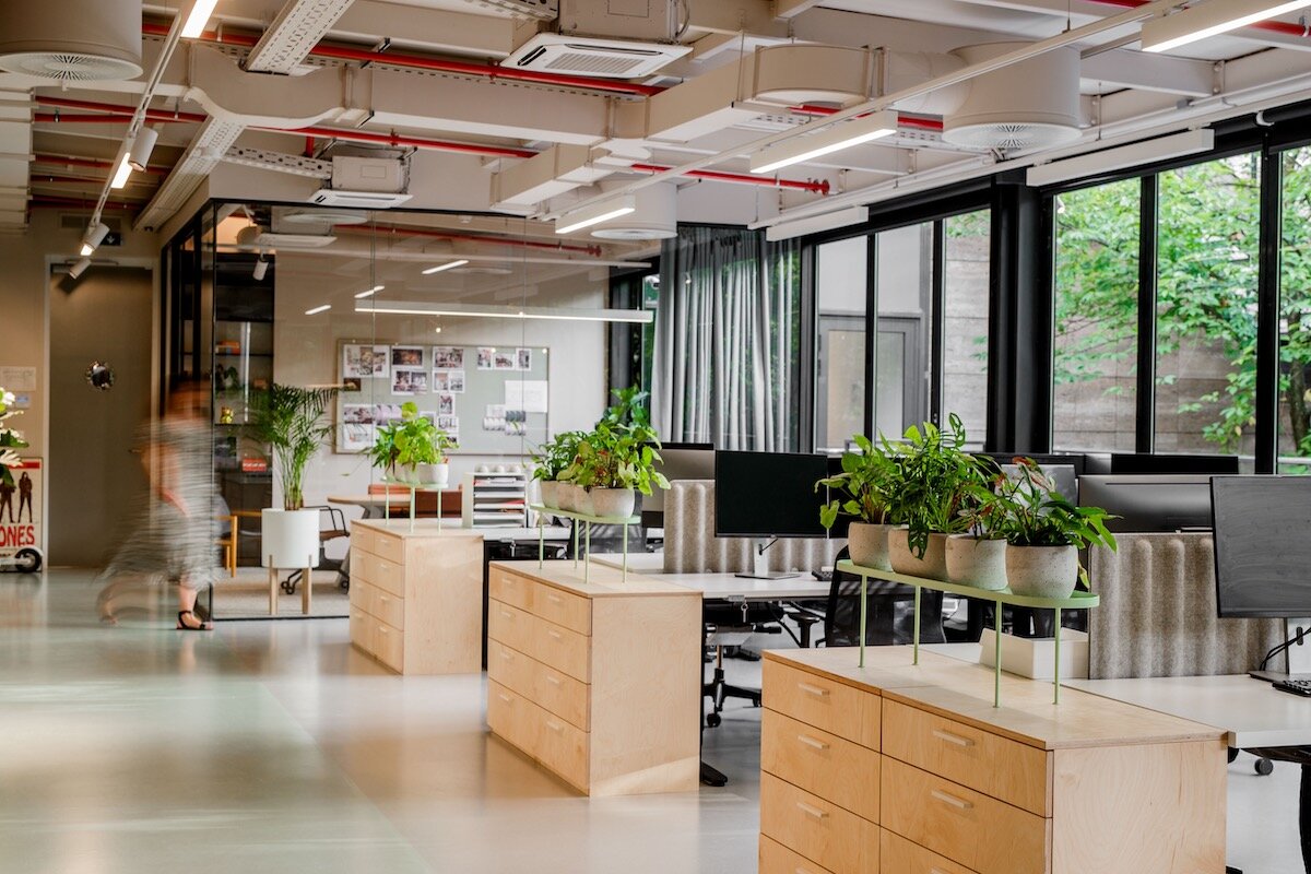 For our new office, we designed a multifunctional space consisting of a showroom, a workspace, and a terrace. Since we specialise in office and retail design, the idea of having a new office space designed as a hybrid of a store and a workspace was a natural fit.