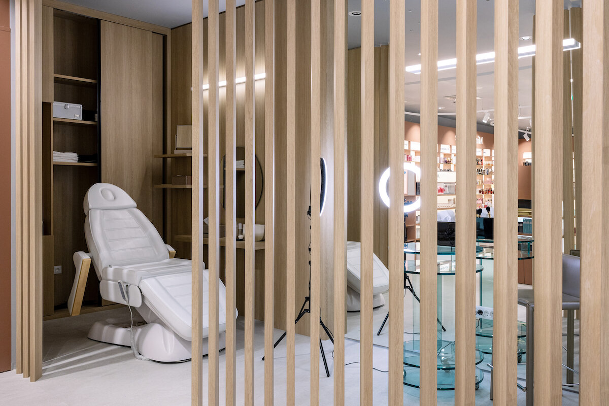 The concept encourages shoppers to explore new beauty products across various spatial zones and activities. The central part of the store aims to engage customers through workshops and educational sessions about new products and innovative beauty tools.