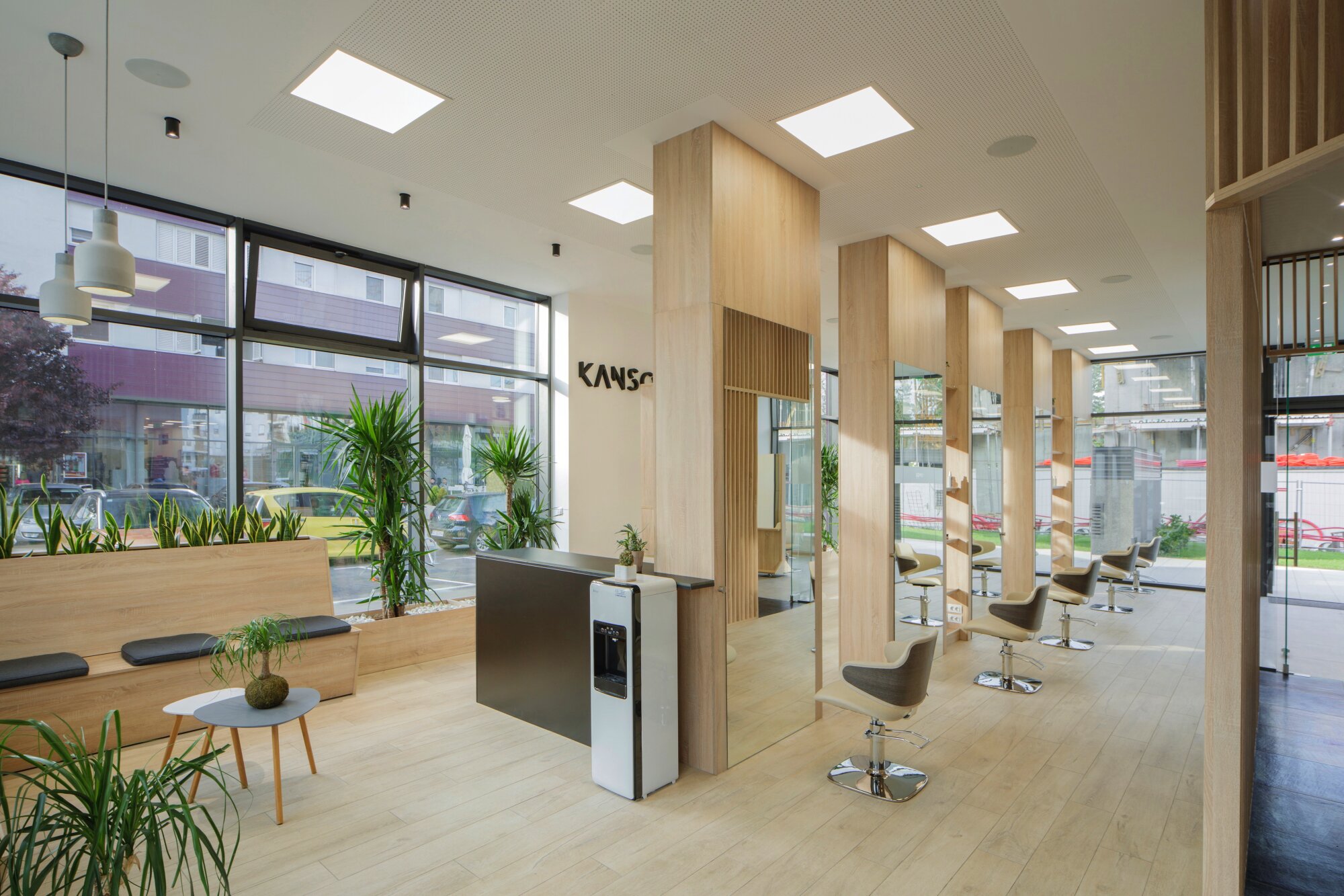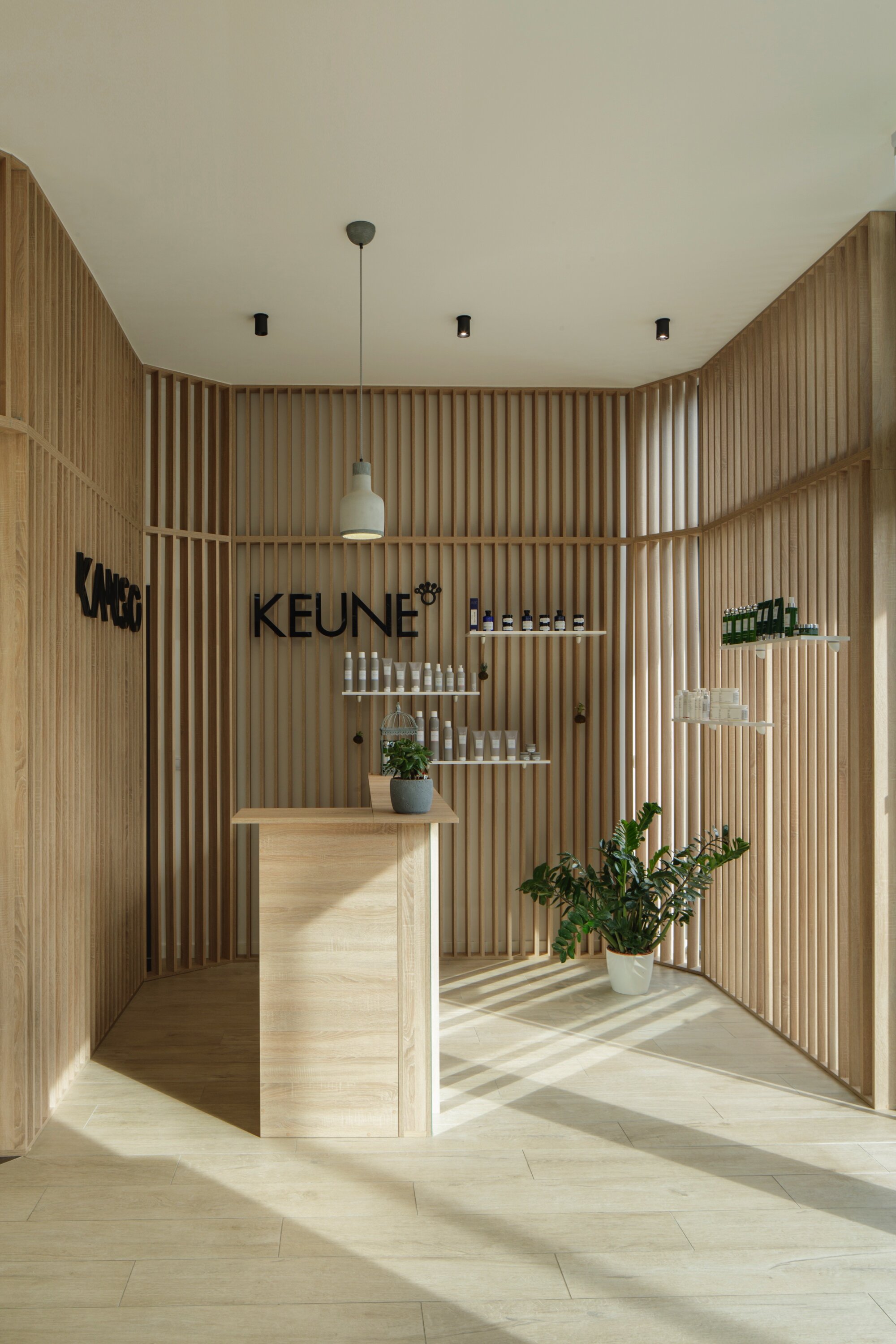 The inspiration behind the creative concept for the interior of Kanso hair salon draws from the tranquility and elegance of a Japanese garden. Japanese gardens are defined by simple lines and natural materials, the result of years of tradition and skilled craftsmanship. They are places where people come to appreciate aesthetics and find relaxation and contemplation.