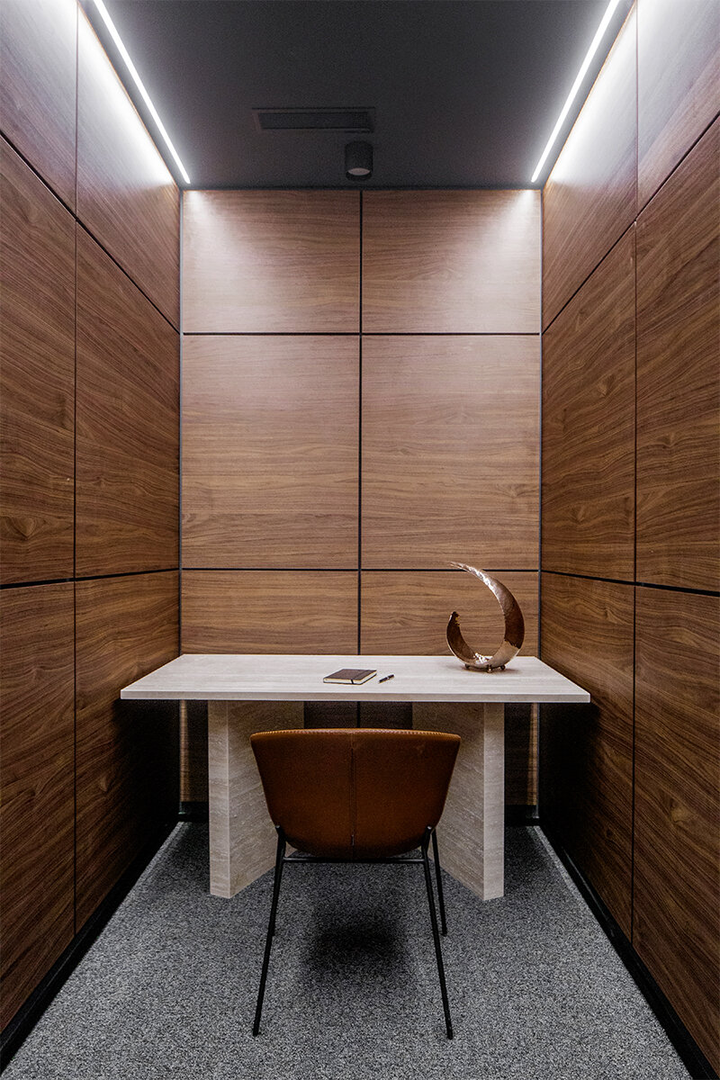 Finally, the second floor is designed as a flexible, multi-purpose environment that can be used for private meetings with long-term clients or for various educational and networking events.