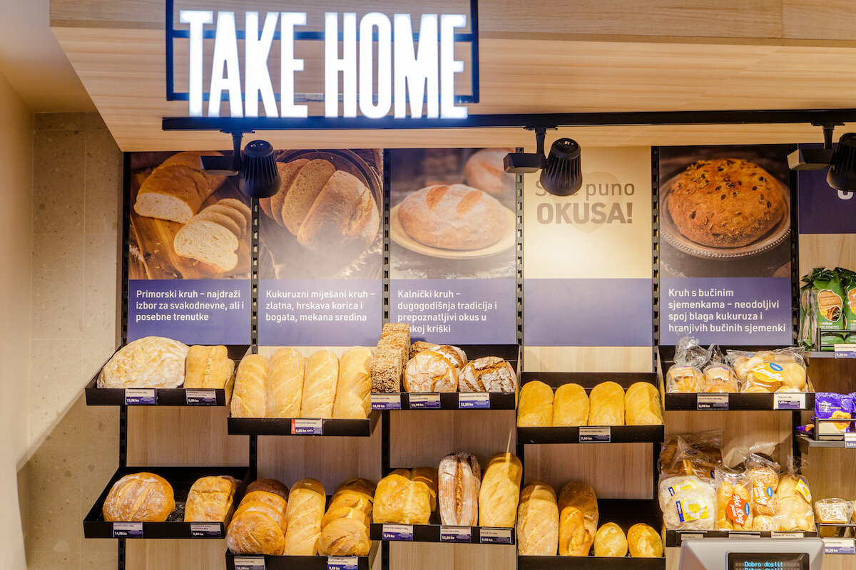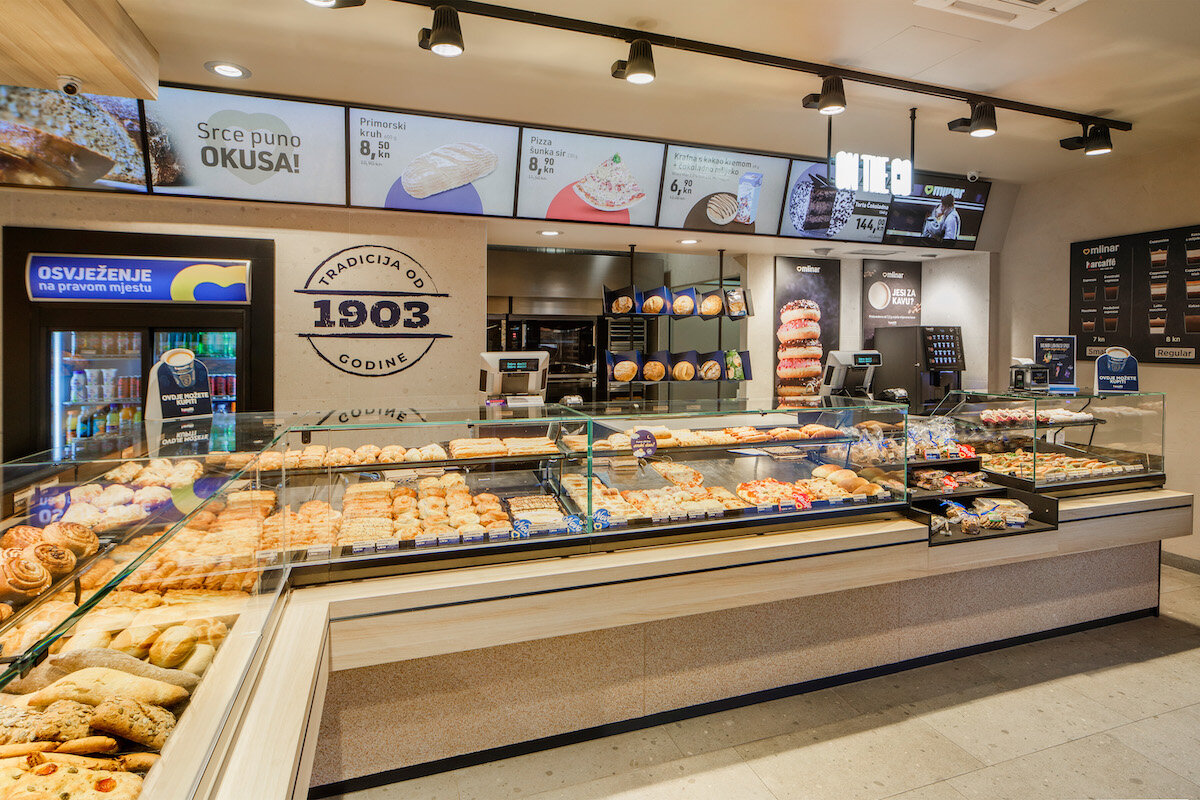 The store has evolved from a traditional bakery with an inflexible, static design into a dynamic space that facilitates the decision-making and purchasing process. Mlinar shops are now vibrant – products are coming in and out of the oven in front of the customers, fresh products are alternating in the shop window several times a day, digital displays are informing customers about best deals and new products, and grab&go displays offer the option to enhance purchases with complementary items, even for those in a hurry.