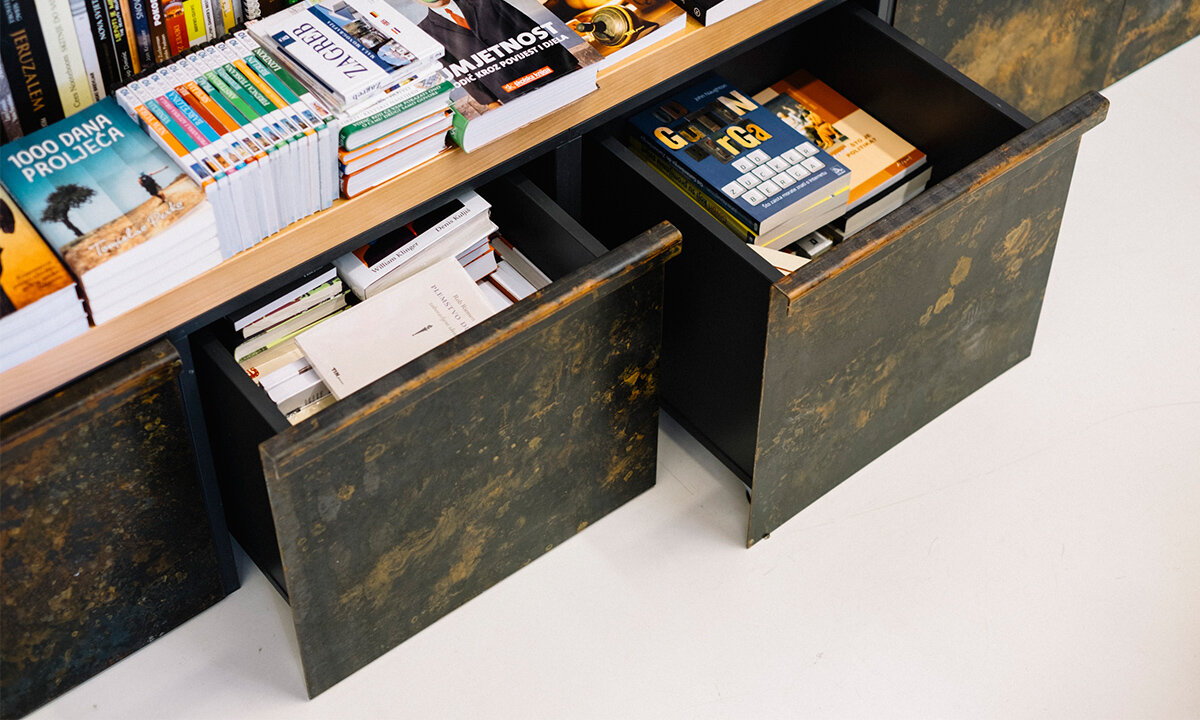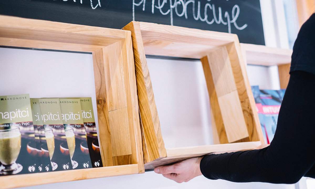 The bookshop's concept had to genuinely reflect the values promoted by Planetopija as a publishing house and library, as well as by Biovega as their parent brand, succinctly summarised in the slogan: “the best nature and man can give.” Additionally, we set out to integrate an area for eco-friendly products, create a dedicated children's corner, and establish a space where visitors could pause and immerse themselves in reading.