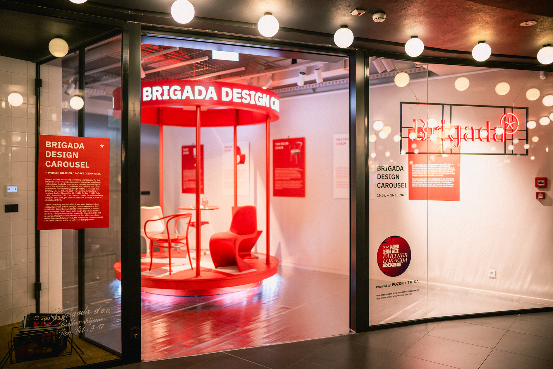 At Brigada, spatial design is not just about form it’s about experience. For Zagreb Design Week, we developed Design Carousel, an analogue and interactive installation that engages the body, emotion, and memory without the use of digital layers.