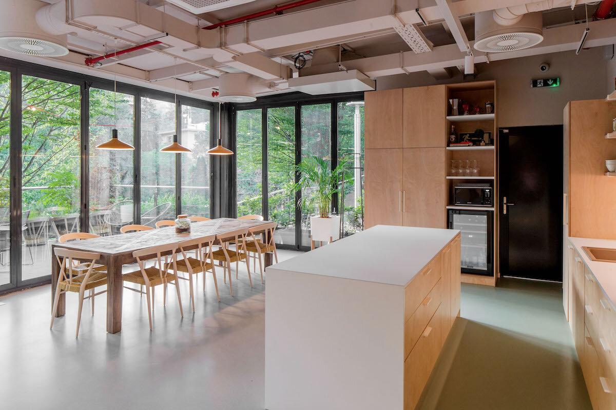 For our new office, we designed a multifunctional space consisting of a showroom, a workspace, and a terrace. Since we specialise in office and retail design, the idea of having a new office space designed as a hybrid of a store and a workspace was a natural fit.