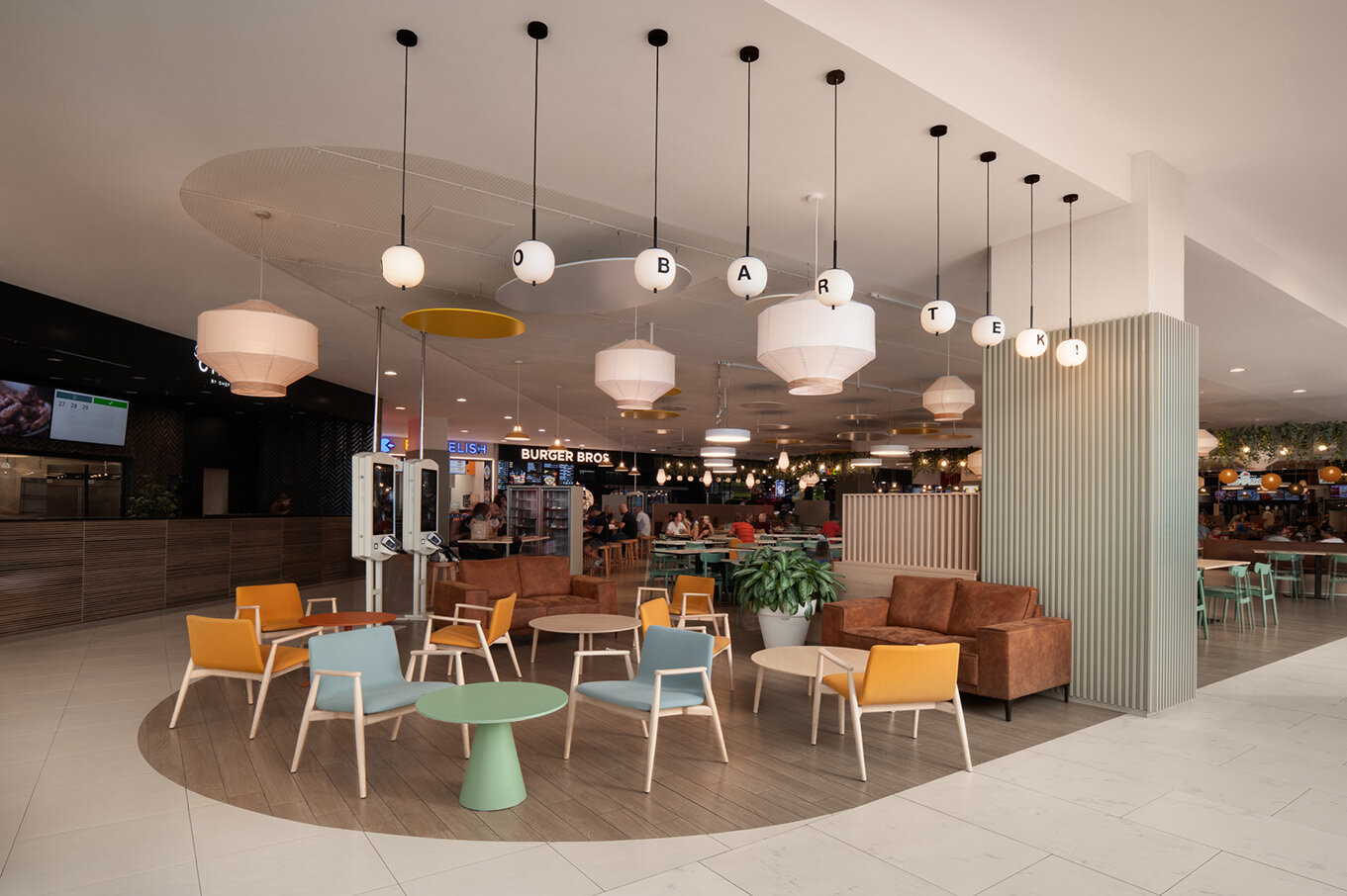 The design concept for the new Food Court revolves around the idea of a Gastro Market – a place that captures the dynamic, urban atmosphere of food festivals and brings it to everyday life.