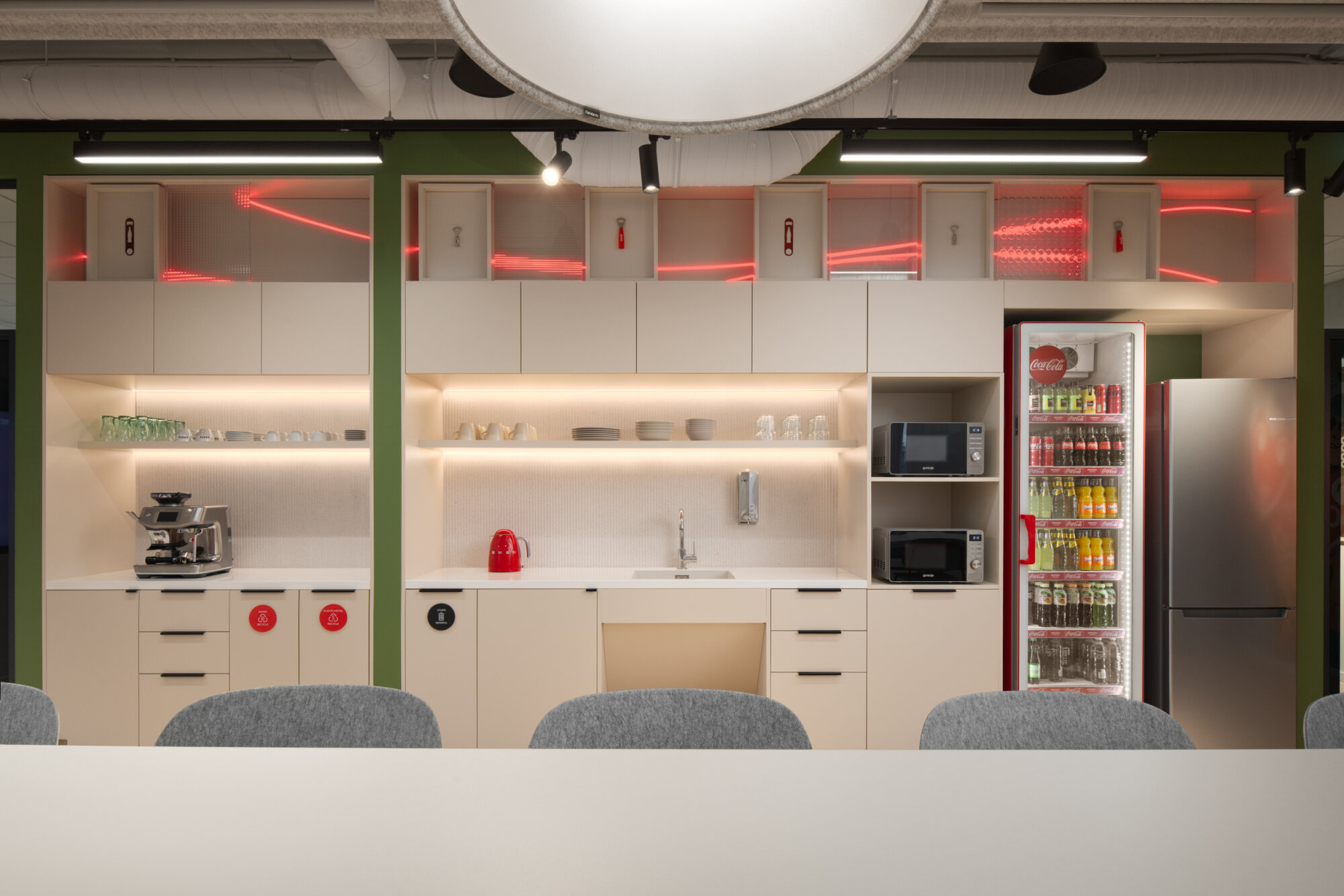 To foster social connection and team cohesion, the office includes a shared kitchen area—a recharge space for collaboration and bonding. A wellness room was also designed to prioritize employees’ wellbeing, offering a space for relaxation, exercise, or quiet retreat. This project reflects Brigada’s dedication to creating human-centered workspaces that balance productivity and emotional engagement. By combining function, comfort, and local character, the design of Coca-Cola Adria’s Zagreb office offers a thoughtful response to the needs of today’s workforce, setting a new standard for workplace environments.