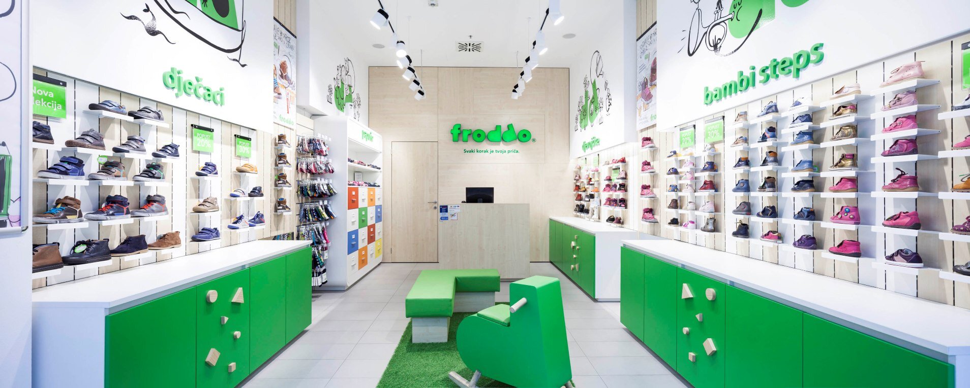 Within the book, we cover the purpose of the manual, concept, design guidelines, and provide an index of materials. Following a thorough analysis that led to our new shop concept, we describe the various types of Froddo stores, including outlets and simple Froddo corners within multi-brand shoe shops, along with specific layout recommendations for each. The book concludes with details about the appearance of promotional materials, sales and offers, communication methods, and other essential messages to effectively reach customers.