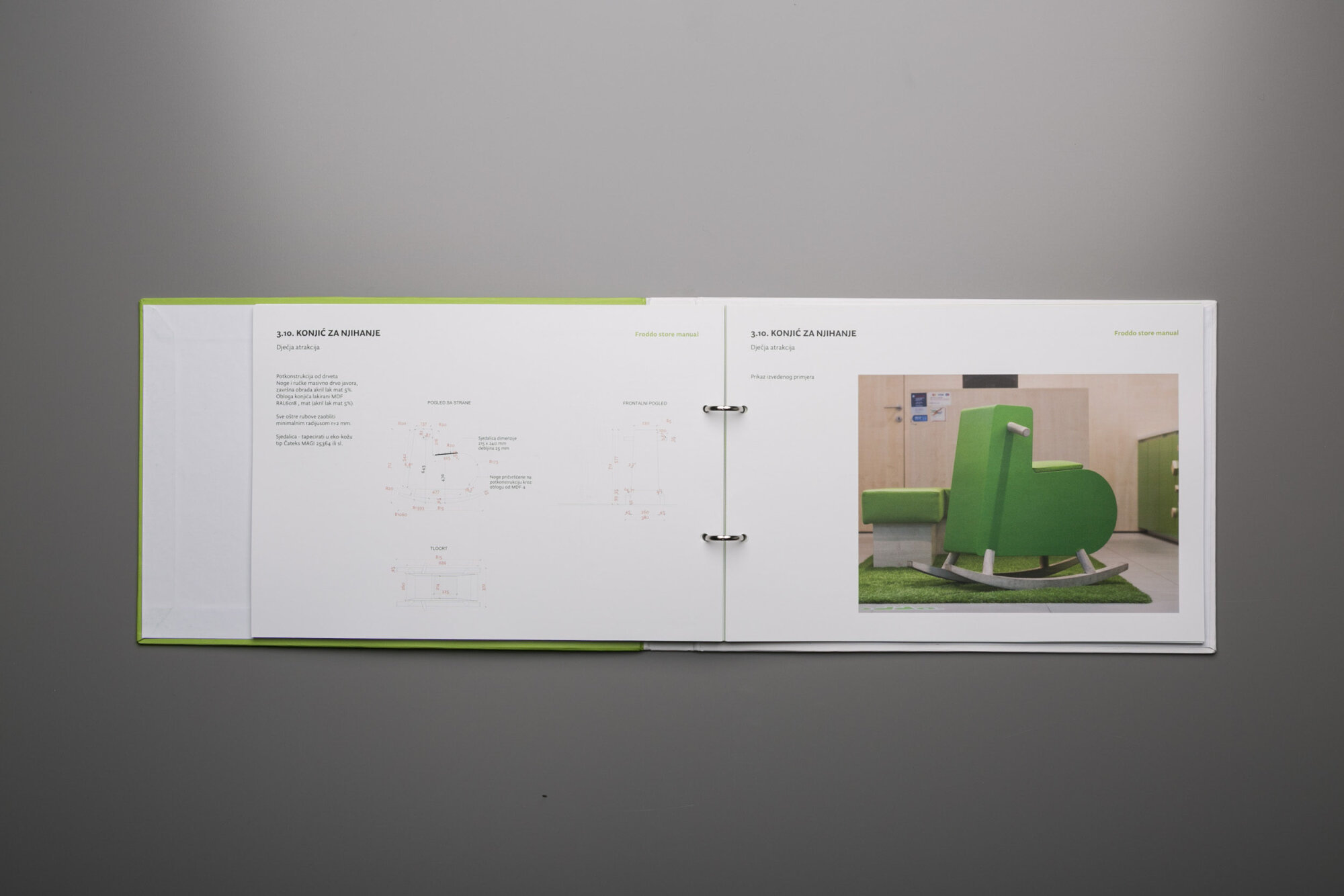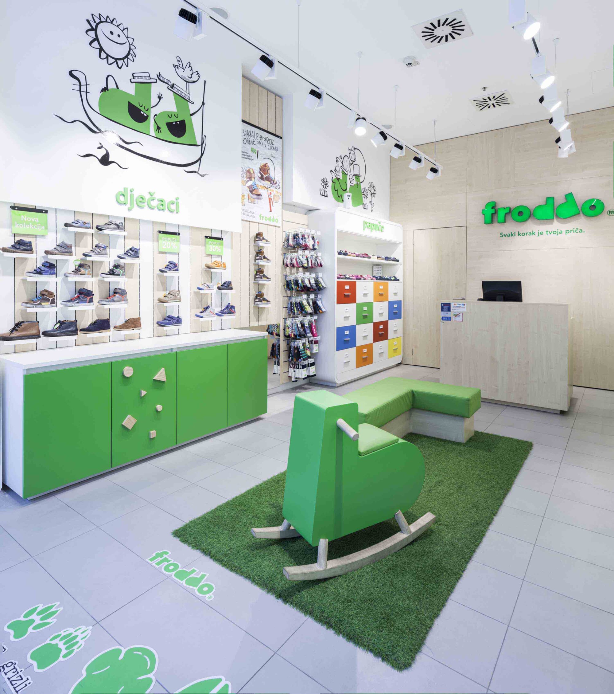 In line with our redesigned retail concept, we aimed to ensure that all Froddo stores have a uniform design. To achieve this, we've developed a store manual that contains guidelines for the standardisation of the shop design. The front cover features a light blend of green and white colours, with a playful cartoon character from the Froddo story on the back, symbolising the essence of our store design and brand experience.