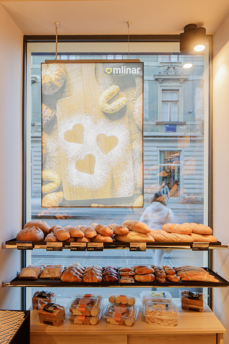 Once a destination bakery where people purchased bread, pastries, and flour products to prepare and enjoy at home, Mlinar has evolved into an on-the-go chain specialising in baked goods. Our new concept identifies and addresses two distinct types of Mlinar shops: On-the-Go and Take Home. These cater to different shoppers on different occasions, each with their unique consumption patterns.