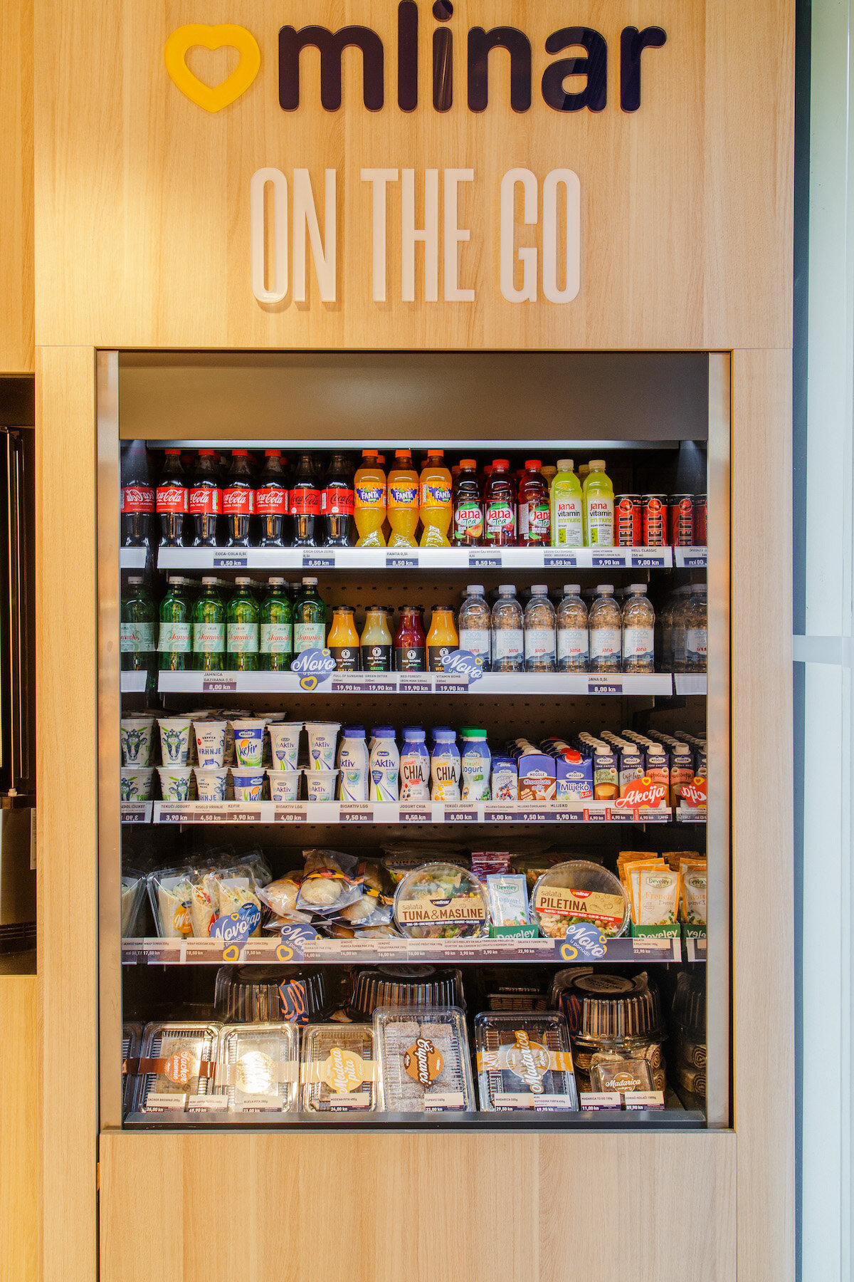 The store has evolved from a traditional bakery with an inflexible, static design into a dynamic space that facilitates the decision-making and purchasing process. Mlinar shops are now vibrant – products are coming in and out of the oven in front of the customers, fresh products are alternating in the shop window several times a day, digital displays are informing customers about best deals and new products, and grab&go displays offer the option to enhance purchases with complementary items, even for those in a hurry.
