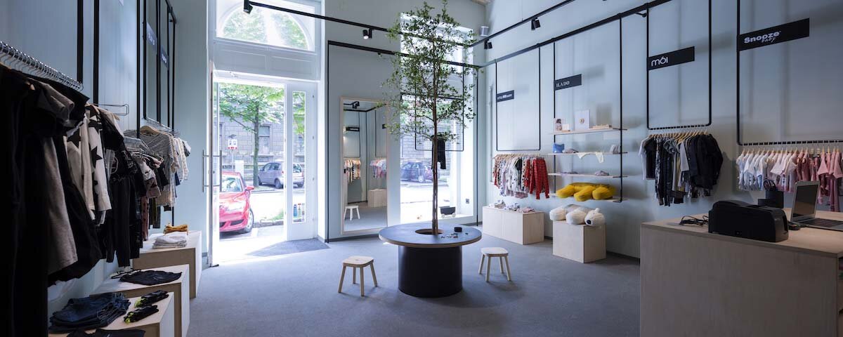 The Ne.Ne.Ne. shop was designed for “small people with great attitudes,” following the brand tag line. This shop was created in collaboration with a client who sought light construction with minimal complications.