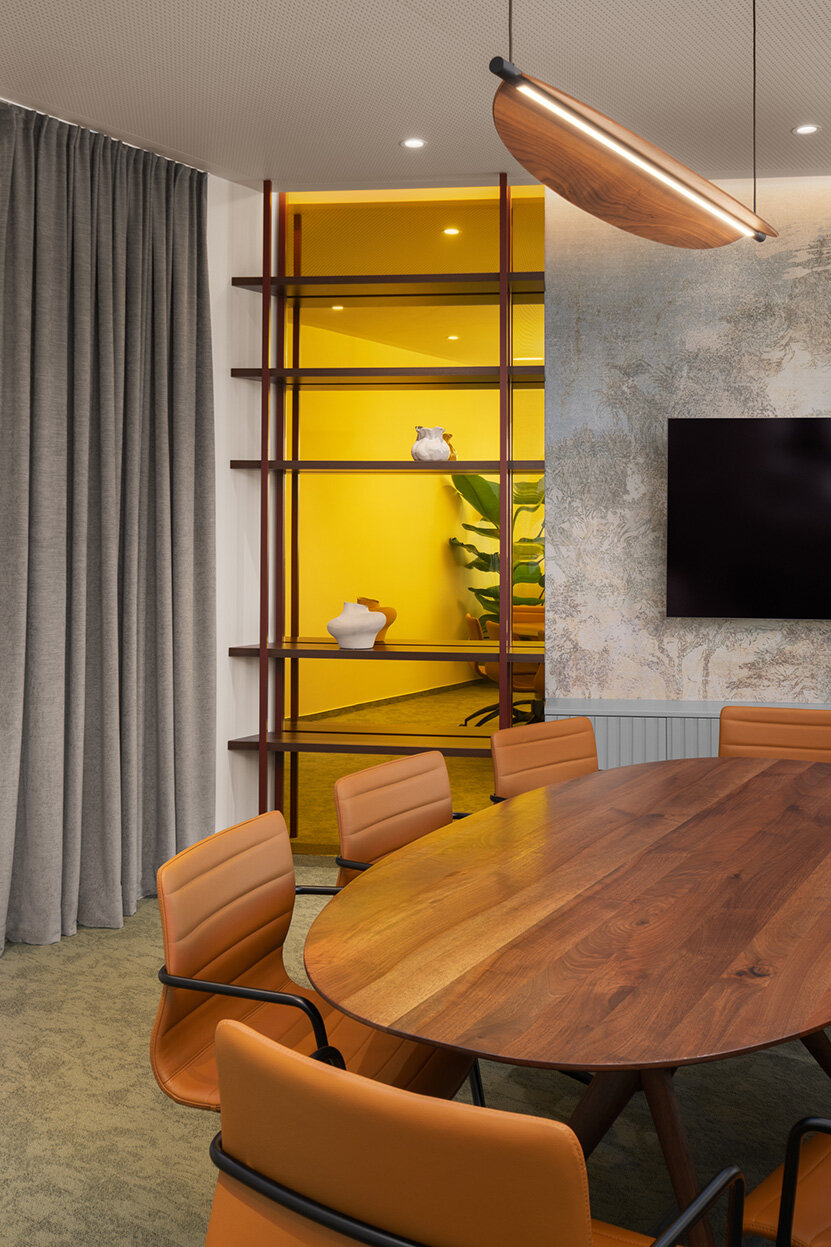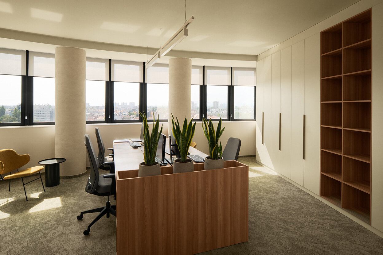 Planters and low green dividers provide privacy for workstations while adding a touch of nature to the interior. Generous storage solutions keep the paper-filled workspace organized and calm. The result is an office that preserves the character of the Cibona Tower but fills it with a new sense of comfort and atmosphere - a place where, much like in a good hotel, you always feel welcome.