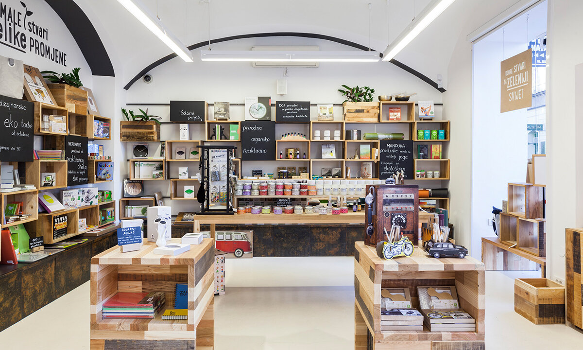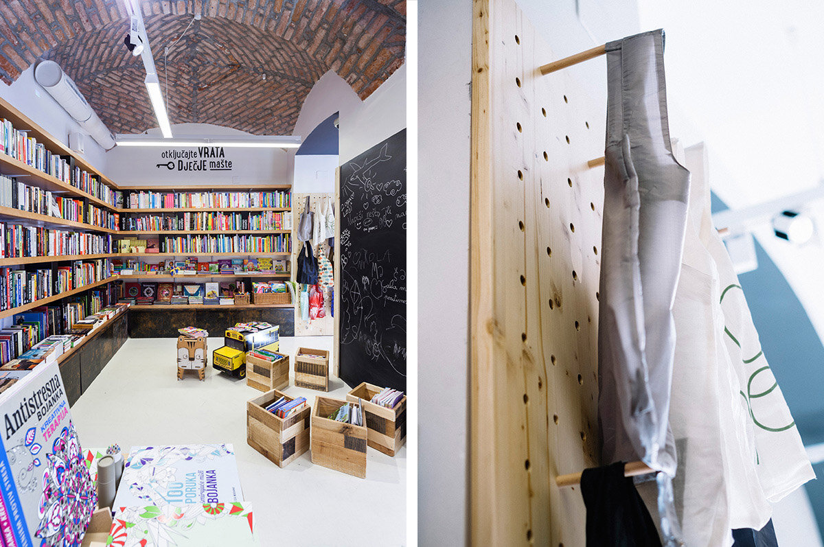 The bookshop's concept had to genuinely reflect the values promoted by Planetopija as a publishing house and library, as well as by Biovega as their parent brand, succinctly summarised in the slogan: “the best nature and man can give.” Additionally, we set out to integrate an area for eco-friendly products, create a dedicated children's corner, and establish a space where visitors could pause and immerse themselves in reading.