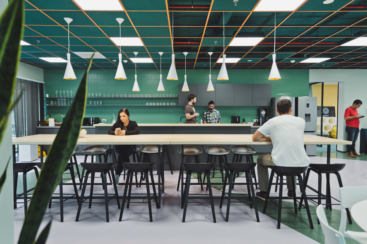 In this new office project, we've incorporated various amenities, including spaces for socialising, relaxation, work, meetings, short calls, and a spacious terrace, aligning with the contemporary trends in workspace design.